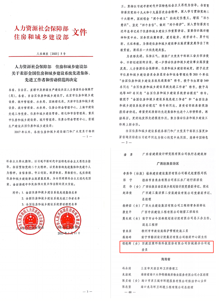 在數(shù)十年如一日的堅(jiān)持中,換來了禤艷輝多次被評(píng)為防城港市“先進(jìn)工作者”、港口區(qū)環(huán)衛(wèi)“先進(jìn)工作者”、廣西最美市政園林工人、最美環(huán)衛(wèi)工人等榮譽(yù)稱號(hào),加上此次“全國(guó)住房和城鄉(xiāng)建設(shè)系統(tǒng)勞動(dòng)模范”稱號(hào),“國(guó)策榜樣”這個(gè)稱號(hào),她實(shí)至名歸!